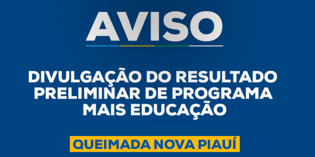 DIVULGAÇÃO DO RESULTADO PRELIMINAR DE PROGRAMA MAIS EDUCAÇÃO Acesse o PDF: Clique aqui para acessar (abre em uma nova guia)